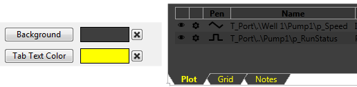 Sets the background and tab-text colors of the overall widget. (Plot, grid and other text colors are set in the following section.)