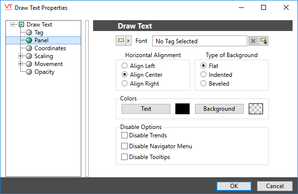The properties dialog for the Draw Text object: