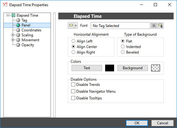 The properties dialog for the Elapsed Time widget will appear as shown: