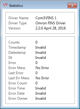 The Show Stats button will display the following information about an Omron FINS driver tag.