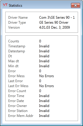 The Show Stats button will display the following information about a GE Series 90 driver tag.