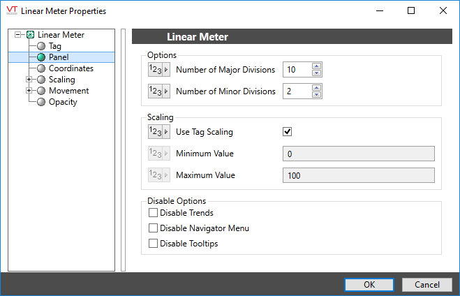If selected, the minimum and maximum range of the meter will be controlled by the tag's scaled minimum and maximum values
