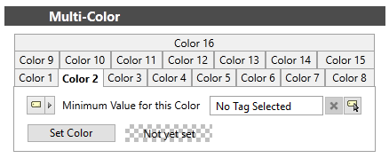 You can create up to 16 colors using the Color 1 through Color 16 tabs. The Color 1 swatch is the default to be shown when no user-defined conditions have been met for any of the other colors.