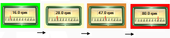 In the following example, a Multi-color widget has been used to create a background for a Linear Gauge widget. As the associated tag’s value increases, the multi-color serves as a visual warning.