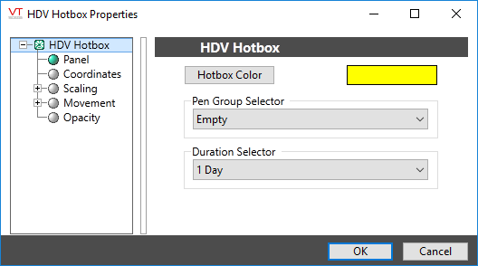 Because more than one of these hotboxes may be added to a page, each opening the HDV with a different pen group or time duration, the hotbox should be placed around a label that indicates what will be shown when the operator clicks on this particular link.