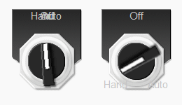 The Selector Switch widget is used to represent a Selector tag as either a 2-position or a 3-position switch. A common use is to create a Hand-Off-Auto selector.