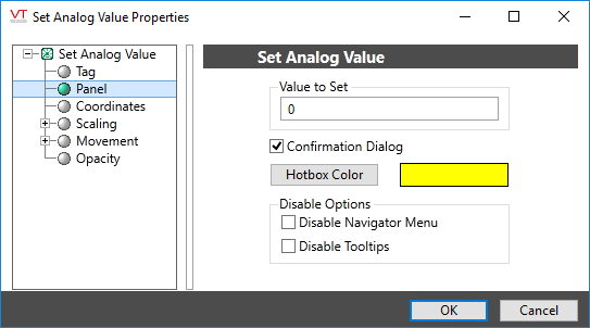 Set the value that will be written when the completed object is clicked. If the associated tag is an analog output, this may be any value that is legal for that tag. Otherwise, this value should match one of the configured states for the associated selector switch.