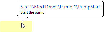 The Set Value Hotbox tag widget is identical in function to the Set Value Button widget. The difference is only in its appearance in your applications. Where the Set Value Button widget creates a click-able button, the Set Value Hotbox creates only a rectangular hotbox marking an area where the operator can click. It is up to you to make it clear to the operator what will happen when the hotbox is clicked.