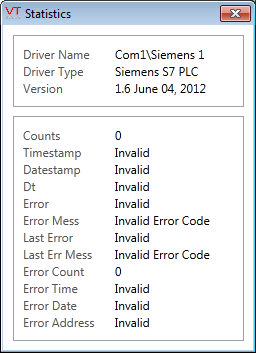 Siemens S7 Driver Statistics Dialog