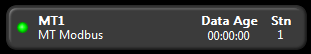 The Site Summary Widget creates a color indicator that both displays the status of communications to the associated station and provides a click-able link to the built-in Station Page for the associated station tag. It also provides relevant information about the underlying station tag. The full display mode option is shown here: