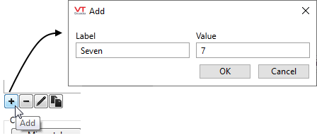 Use the tools below the list to create or edit the values and labels. You can also double-click an entry to open it for editing. When creating a list of similar values, you may find it easier to copy and edit entries than to create each individually.
