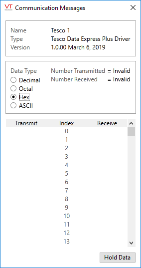 The Hold Data button will freeze the display. Otherwise the dialog updates continuously as messages are transmitted.