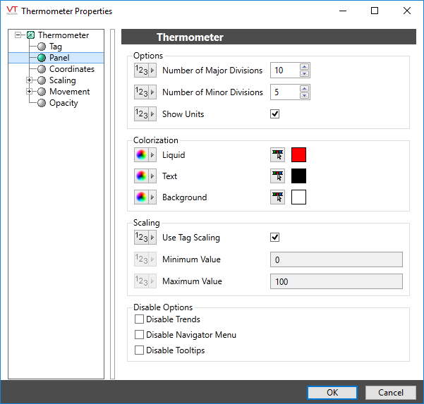 If Use Tag Scaling is selected, the minimum and maximum range of the meter will be controlled by the tag's scaled minimum and maximum values.