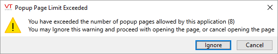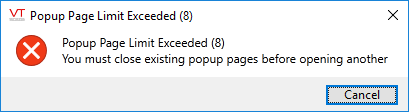 Some applications are designed to limit the number of pop-up pages that will open. If this describes your application, then you might see a message similar to the following.