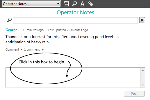 - Click the Note tool in the toolbar, or right-click on the alarm line and select Add Note from the pop-up menu.