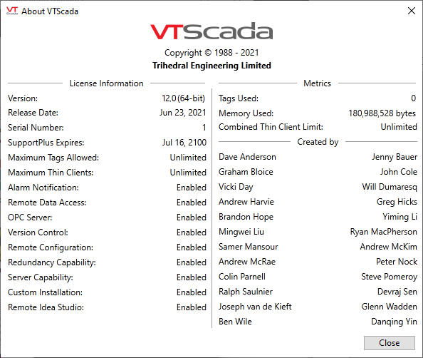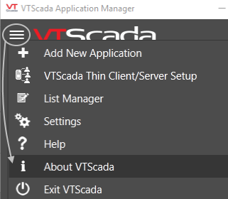 General information about your installation of VTScada can be reviewed by opening the About box, which can be done from the VTScada Application Manager: