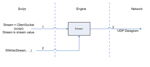 - A UDP datagram is issued to the target device each time a write is done by script code.
