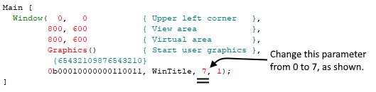 The default window background color is black. Black is also the default color of text in several user-interface tools that you might display in that window. Therefore, you might want to change the window color to gray1. Do so by modifying the Window call as follows: