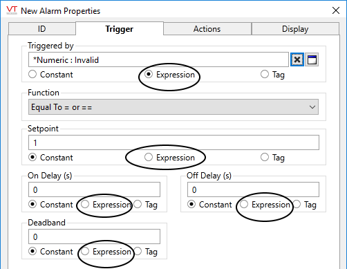 In any VTScada tag configuration field that has the options, Constant, Expression, Tag...