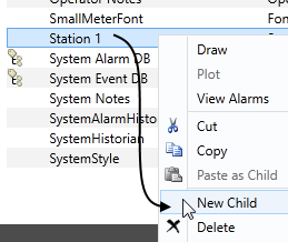- Right-click on Station 1, then select New Child from the menu that opens.
