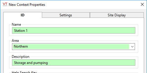 You should now be looking at the ID tab of a new Context tag. - Name this tag, Station 1