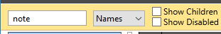 Tags are often organized in parent-child hierarchies. If you want to find every tag of a certain name, description or property, the Show Children option can be useful. But not when you need to see only the tags at the current level. - Clear the filters. To clear the name filter, delete the word note and press enter.